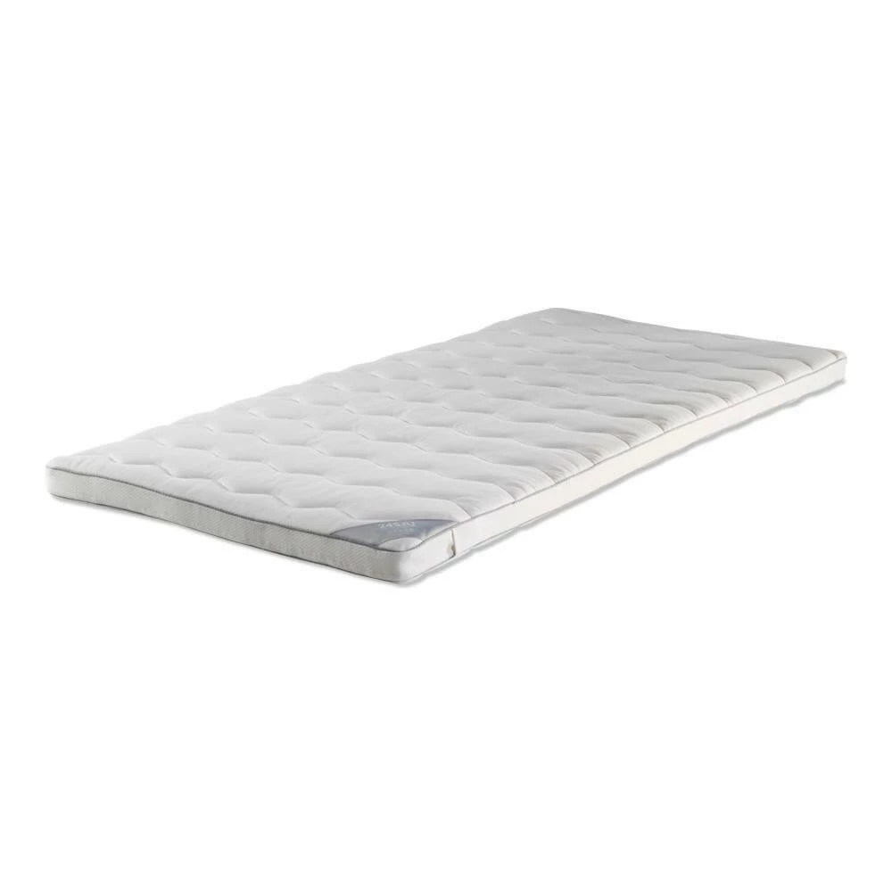 En bekväm, svensktillverkad bäddmadrass med polyeterskumstoppning. Klädseln är vit med grått kantband och pryds av en vågmönstrad vaddering, en okomplicerad och trevlig designdetalj. Med stretch i tyget får du god kontakt med sängens fjädersystem.