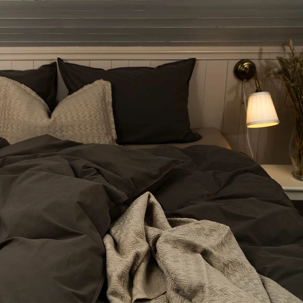 Örngottet är infärgat och tvättat efter att det är sytt vilket gör att det får en extra mjukhet. En dröm att sova på! Finns även som påslakanset så som bilden visar.
