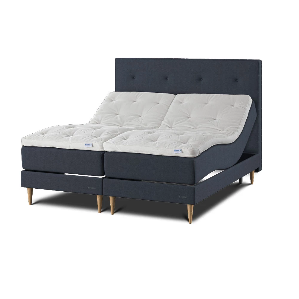 Ställbar säng i Hildings Family Plus-serie är en modern och elegant ställbar säng med högsta tänkbara komfort och de bästa lösningarna. Den multiledade bottenplattan ger optimal följsamhet längs kroppen, oavsett sängens position. Detta är Hildings mest exklusiva ställbara säng märks när du lägger dig i sängen och känner det unika, dynamiska 18 cm höga aktiva pocketsystemet som nästintill ger känslan av att sväva. Med den intuitiva handkontrollen styr du enkelt den tysta och avancerade motorn och ställer enkelt sängen i önskad position. Alla delar av sängen kan regleras separat och i upphöjt läge får även nacken ett bekvämt stöd. Family Plus är en säng som är värd att uppleva. Multifickan på sidan av sängen där fjärrkontrollen praktiskt kan förvaras ingår. En Family Plus säng ger dig något utöver det vanliga och har allt vad man kan önska av en exklusiv säng. Byggd med omsorg men väl utvalda material. Klädseln är avtagbar och tvättbar om så skulle behövas. Genom att kombinera komfort och design sätter denna säng sin egen prägel på sovrummet. Välj den färg, fasthet och storlek som passar dig och ditt sovrum.