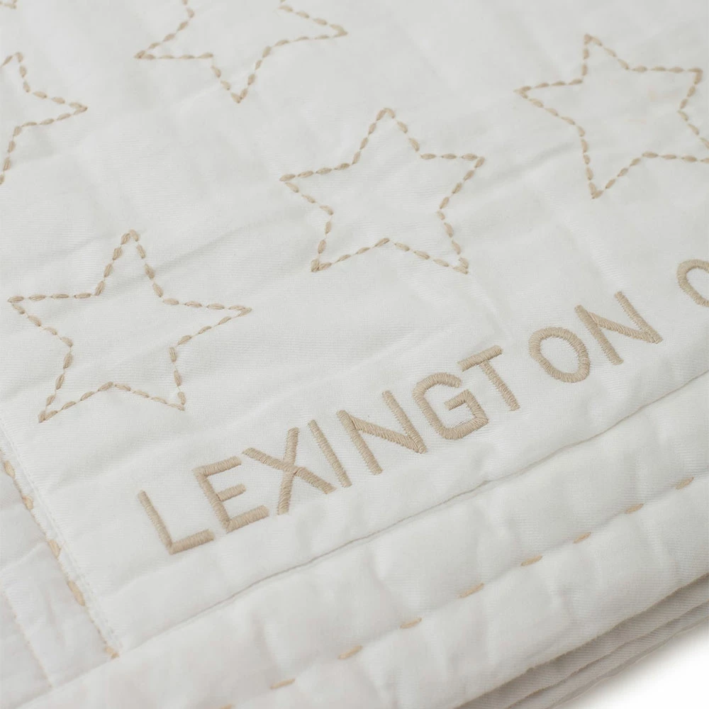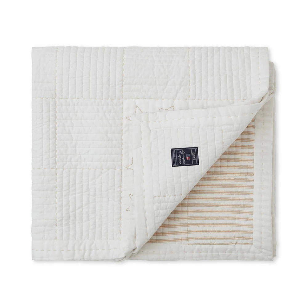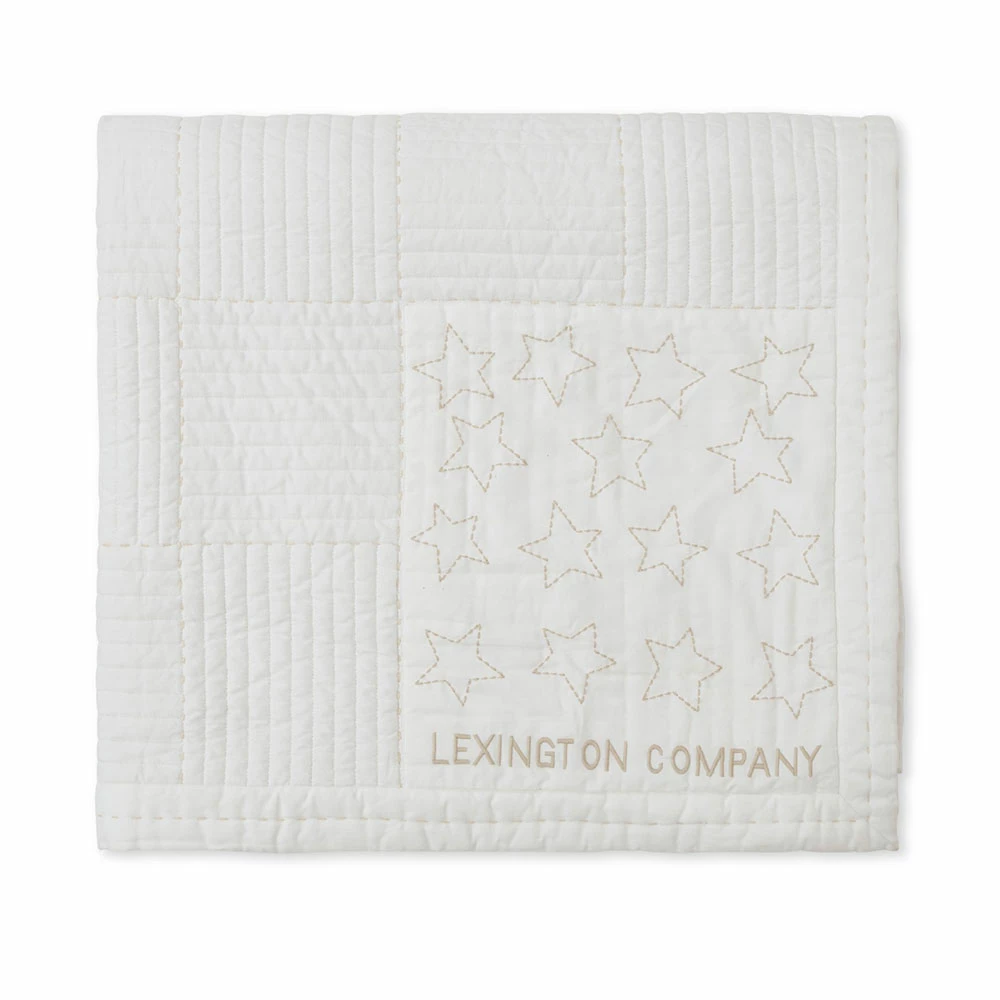 Quiltat överkast från Lexington i härlig bomullstwill med en lyxig känsla. Utöver den härliga quiltade ytan är överkastet smyckat med diskreta stjärnor samt broderade och handsydda detaljer på framsidan. Överkastet är tillverkat av 100% OEKO-TEX-certifierad bomull och har en vaddering av 100% återvunnen polyester. Mjuk beige- och vitrandig baksida.