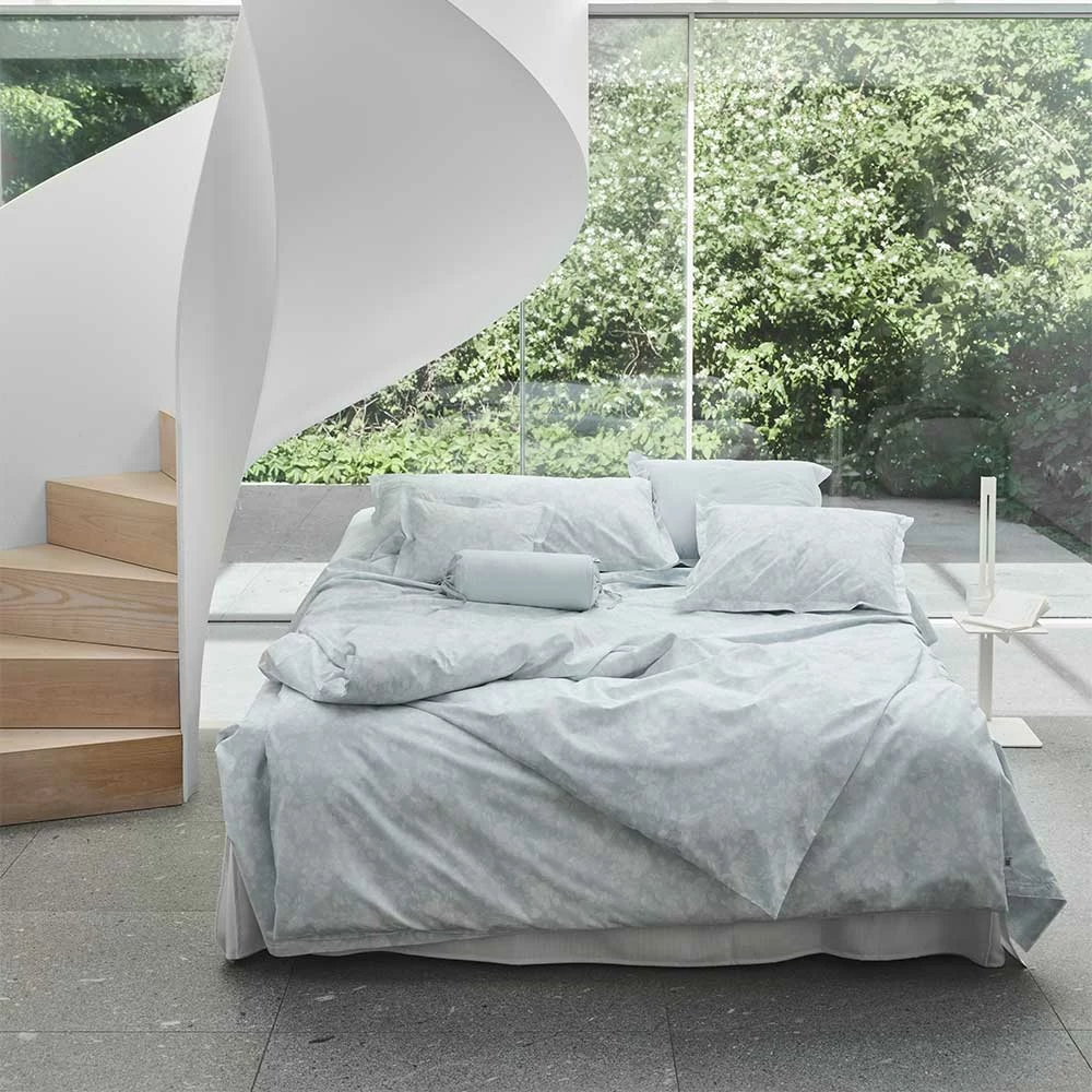 Mille Notti Fiore är ett örngott tillverkat 50% bomull och 50% Lyocell (TENCEL). Denna kombination ger en mjuk & krispig känsla för sängkläderna. Påslakanet har en färgad bakgrund med vitt blommönster tryckt ovanpå. Försluts med en praktisk omlottstängning på baksidan och har en 3 cm bred vinge som dekorativt ramar in kudden. Matchande påslakan säljes separat och finns i flera storlekar.