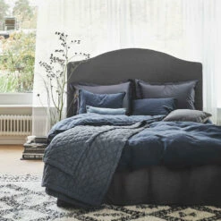 Tvättas i 60 grader. Använd inte blekmedel. Hängtorka. Strykes på hög värme för att få fram tygets vackra glans.